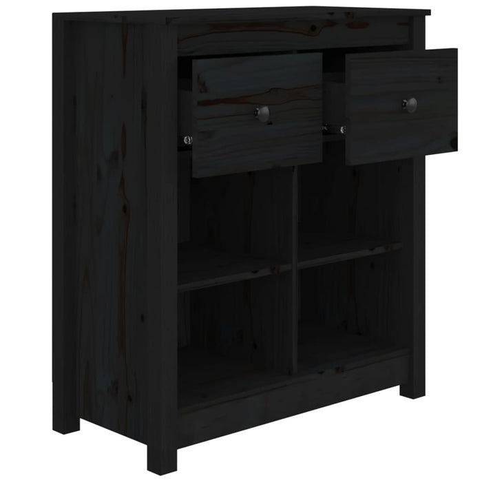 Avec des dimensions de 70 x 35 x 80 cm (L x P x H), ce buffet dispose de suffisamment d'espace de rangement grâce aux 2 tiroirs et 4 compartiments. Idéal pour organiser les essentiels du quotidien, tandis que le plateau constitue également l'endroit idéal pour les objets de décoration. Le bois de pin massif dans lequel ce meuble est fabriqué garantit une construction durable et solide, ce qui en fait un ajout précieux pour les années à venir.