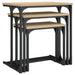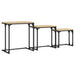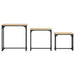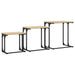 L'ensemble de tables basses se compose de différentes tailles, vous permettant de répondre à différents besoins et situations. Les petites tables s'insèrent sous les plus grandes, ce qui garantit une utilisation optimale de l'espace disponible. Le bois d'ingénierie de haute qualité utilisé pour ces tables garantit une surface lisse et offre une forte stabilité et résistance à l'humidité. Les cadres en métal ajoutent également un look industriel cool, ce qui rend l'ensemble non seulement pratique, mais aussi une amélioration visuelle à votre décor.