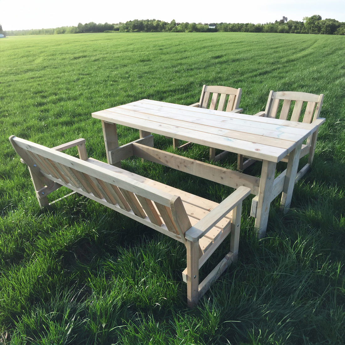 • Résistant aux intempéries : Grâce au traitement, l'ensemble peut rester à l'extérieur toute l'année sans perte de qualité.