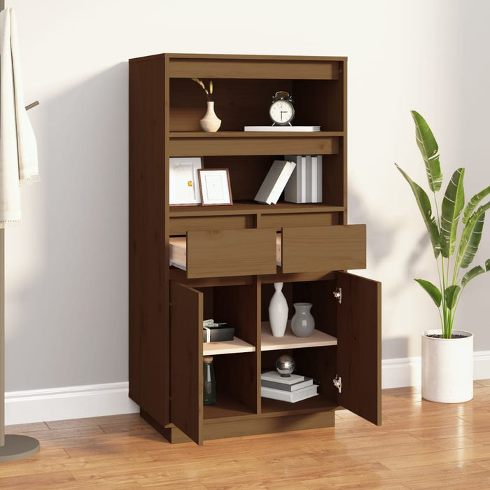 Le Meuble Haut Prylis | Grenova offre de nombreux espaces de rangement avec ses deux étagères ouvertes, ses deux tiroirs et ses quatre compartiments. Grâce au design intelligent avec portes, vos affaires sont protégées contre la poussière et la saleté, les gardant belles plus longtemps. Le plateau robuste sur le dessus est parfait pour exposer vos photos, décorations ou fleurs préférées, afin que vous puissiez ajouter une touche personnelle à votre espace. Profitez de la beauté naturelle du bois de pin massif, qui présente des grains droits et un aspect rustique grâce aux nœuds caractéristiques.