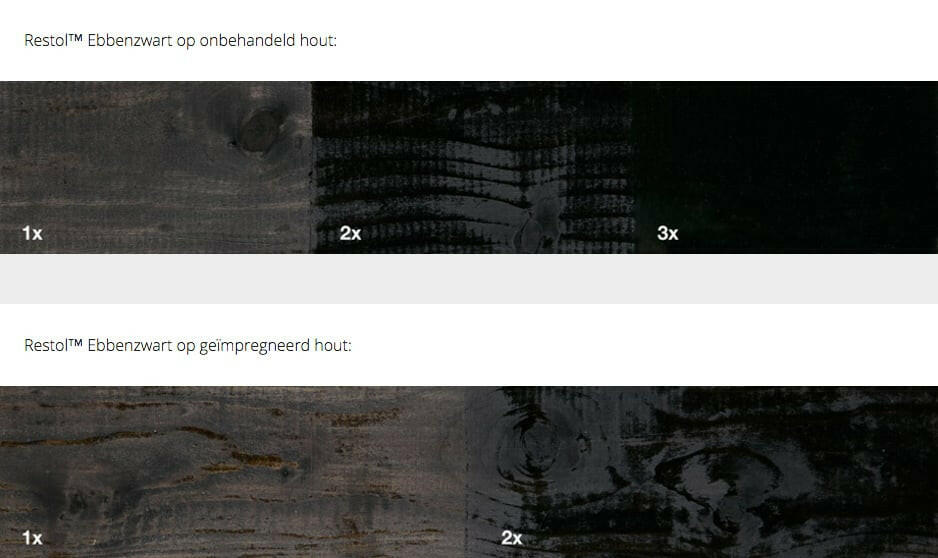 - Pour le bois imprégné, nous recommandons deux couches. Pour les autres bois, vous pouvez appliquer trois couches pour des résultats optimaux et une finition noire plus profonde.