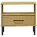 La table de chevet Clorix | Grenova est fabriqué à partir de bois de pin massif, connu pour sa durabilité et sa beauté rustique. Les nœuds naturels et les grains droits donnent à chaque pièce un look unique. Les pieds en métal robustes assurent non seulement la stabilité, mais renforcent également le caractère industriel de la table de chevet.