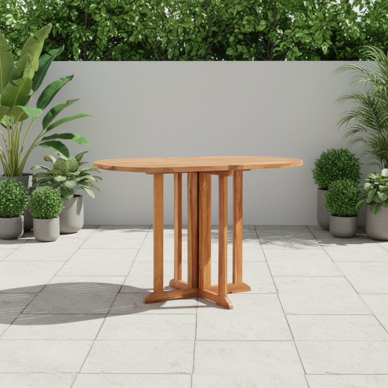 La table est fabriquée en bois de teck massif, un matériau connu pour sa solidité exceptionnelle et ses propriétés de résistance aux intempéries. Avec des dimensions de 150 x 90 x 75 cm une fois dépliée et de 150 x 14 x 75 cm une fois pliée, cette table est parfaite à tout moment. Avec une épaisseur de plateau de 2,2 cm, la surface stable offre suffisamment d'espace pour toutes vos boissons, repas et collations. La possibilité de déplier complètement le plateau de la table en fait également un choix idéal pour les dîners avec plusieurs invités, ou pour une utilisation dans la cuisine et les petites salles à manger.