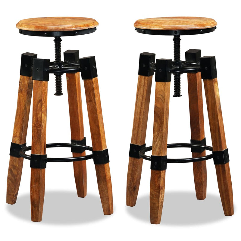 Les tabourets de bar Jorvison | Zomango est non seulement pratique, mais offre également divers avantages. Le réglage de la hauteur permet une adaptabilité à différentes hauteurs de table, afin que vous puissiez les utiliser dans différents environnements. Grâce à l'utilisation de bois de manguier massif, ils sont non seulement durables, mais aussi robustes et adaptés à un usage intensif. La combinaison d'éléments en bois et en acier offre un équilibre parfait entre confort et style, idéal pour tout intérieur moderne.