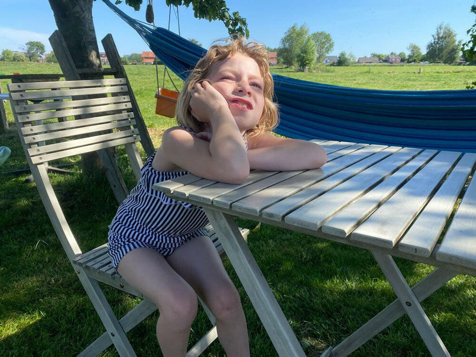 Cet ensemble abordable se compose de 2 chaises de jardin pliables et d'une table inclinée compacte (également pliable !), mais très confortable. Ces chaises et table sont fabriquées à 100 % en bois d'acacia FSC.