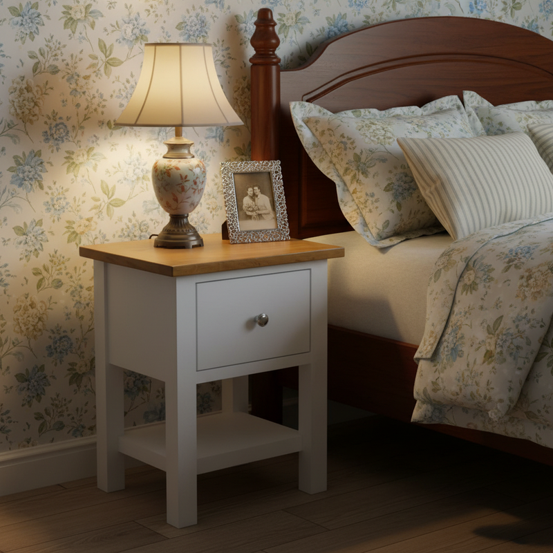 Ogni comodino è dotato di un piano in rovere massello che garantisce robustezza e aggiunge un fascino naturale all'ambiente grazie alle belle venature del legno. La struttura in pino massello conferisce un aspetto contemporaneo. Puoi utilizzarli non solo come comodini, ma anche come tavolini o tavolini da caffè, rendendoli ancora più versatili. Inoltre, sono già completamente assemblati, così puoi usarli immediatamente senza problemi di montaggio.