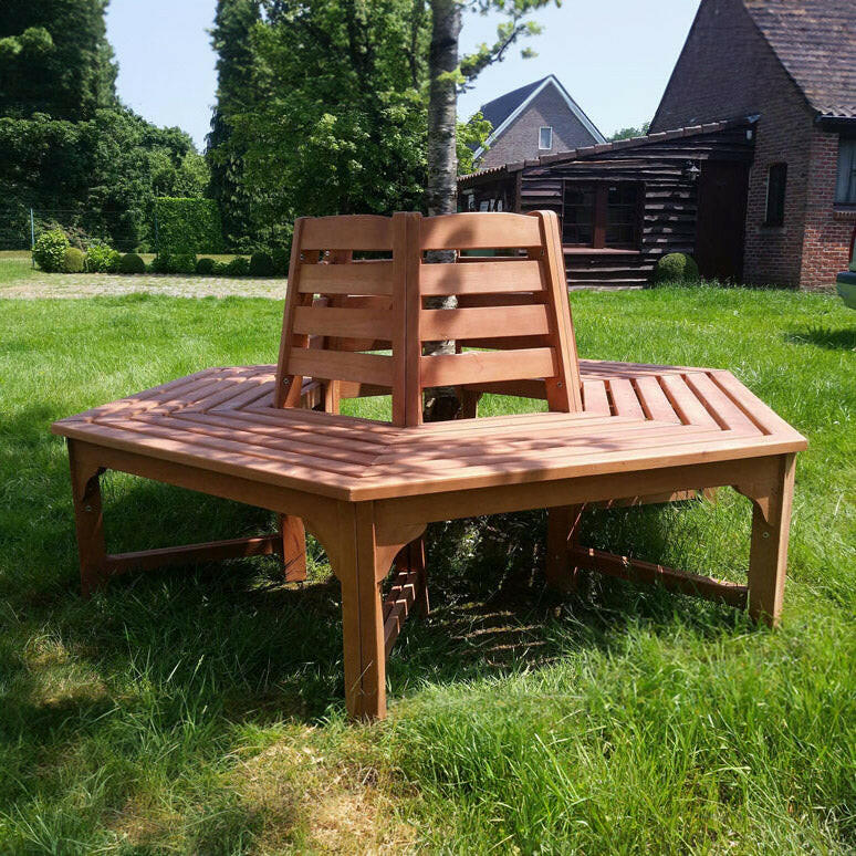 Deze hardhouten boombank met rugleuning is niet alleen een functionele zitplek, maar ook een esthetische aanvulling die bijdraagt aan de sfeer en het uiterlijk van uw tuin. Het is een investering die comfort en stijl combineert, perfect voor degenen die van hun tuin een persoonlijk toevluchtsoord willen maken.