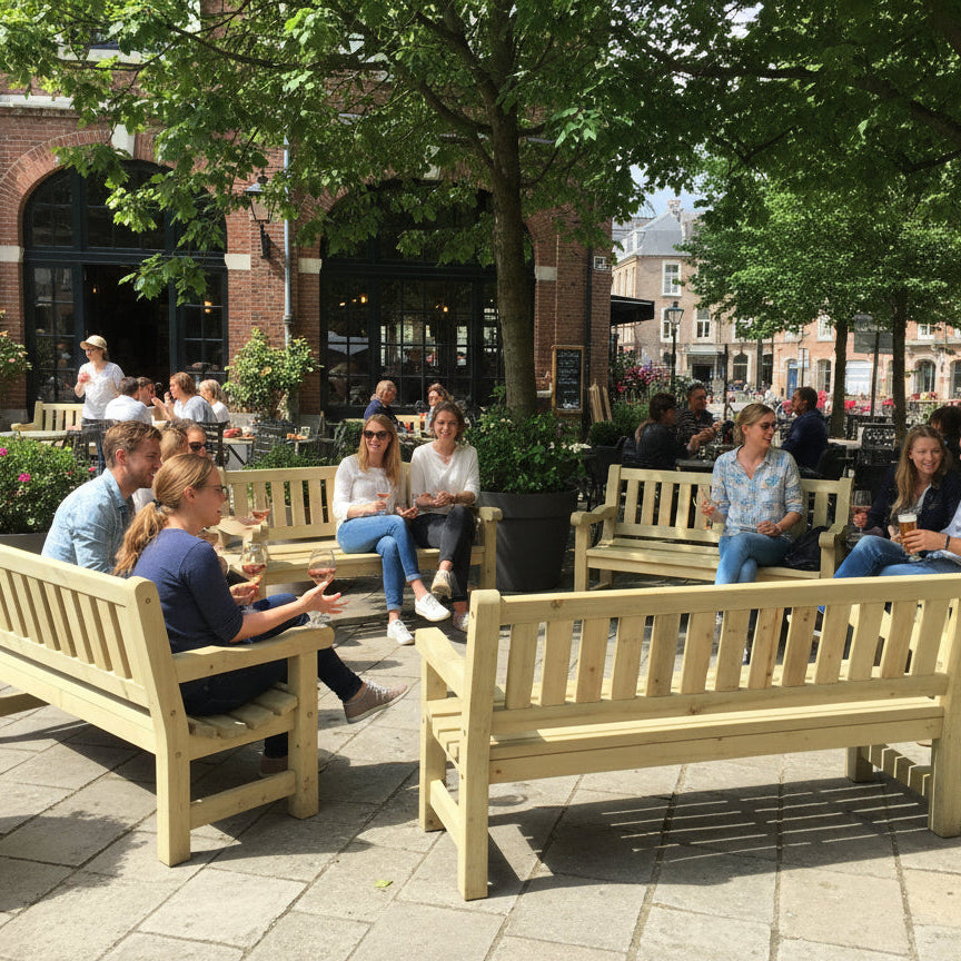 Absoluut. Dankzij de robuuste constructie en duurzame materialen is de KING George tuinbank ideaal voor gebruik in parken, bedrijfsomgevingen en andere openbare ruimtes.