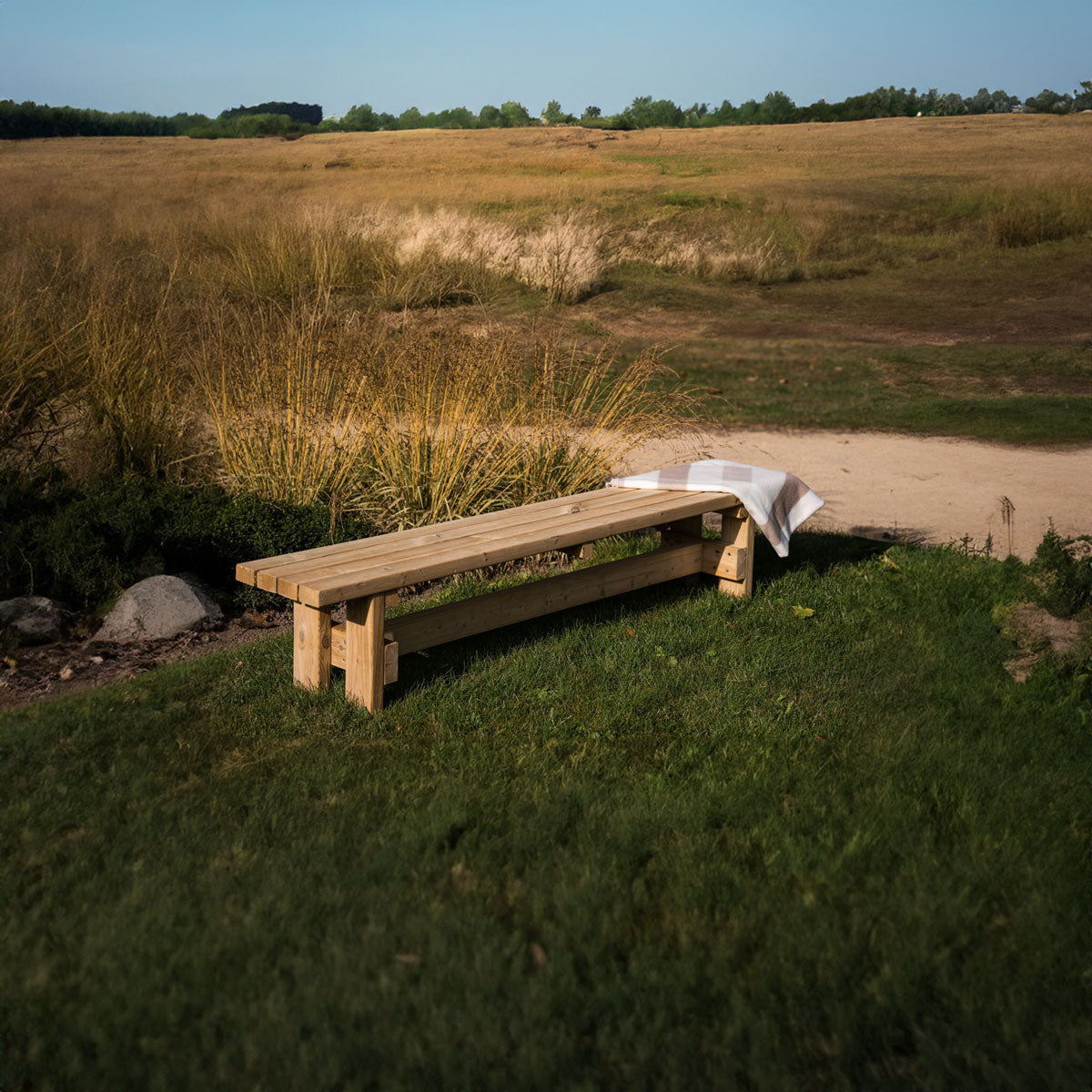 ✅ Stevige constructie met planken van 40 mm dik en robuust onderstel (poten 6 x 4 cm).
