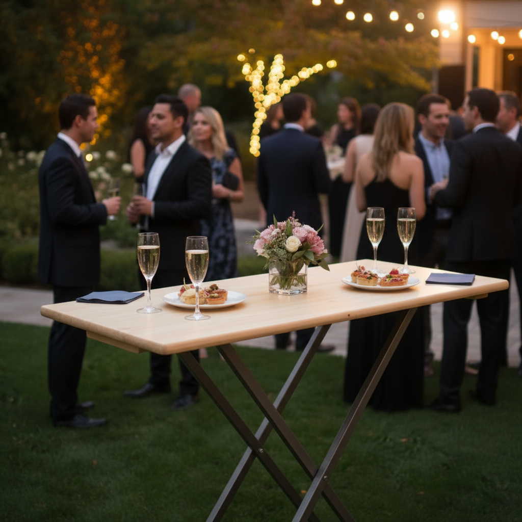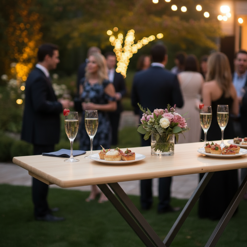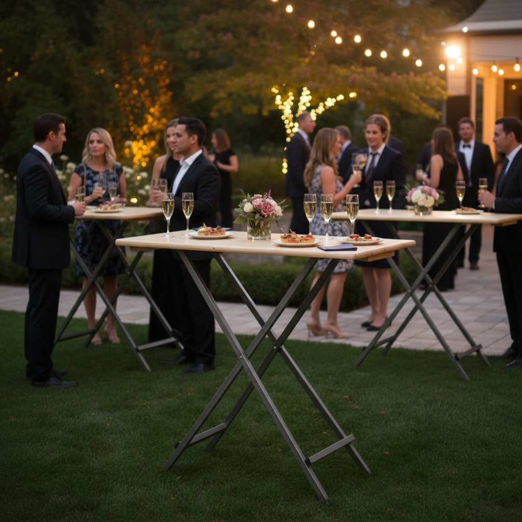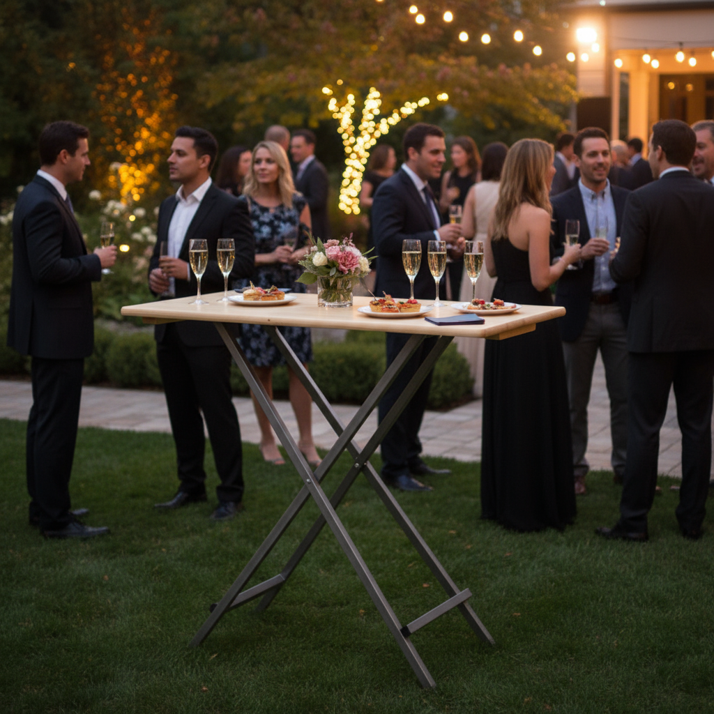 Met een lengte van 120 cm, een breedte van 80 cm en een hoogte van 110 cm, is deze opklapbare tafel de ideale keuze voor verschillende feestelijke gelegenheden. Het design laat het toe om genoeg ruimte te creëren voor dranken, snacks of zelfs als extra plek voor activiteiten. Dit slimme meubelstuk past zich moeiteloos aan jouw behoeften aan, of je nu een groot feest of een klein samenzijn plant.