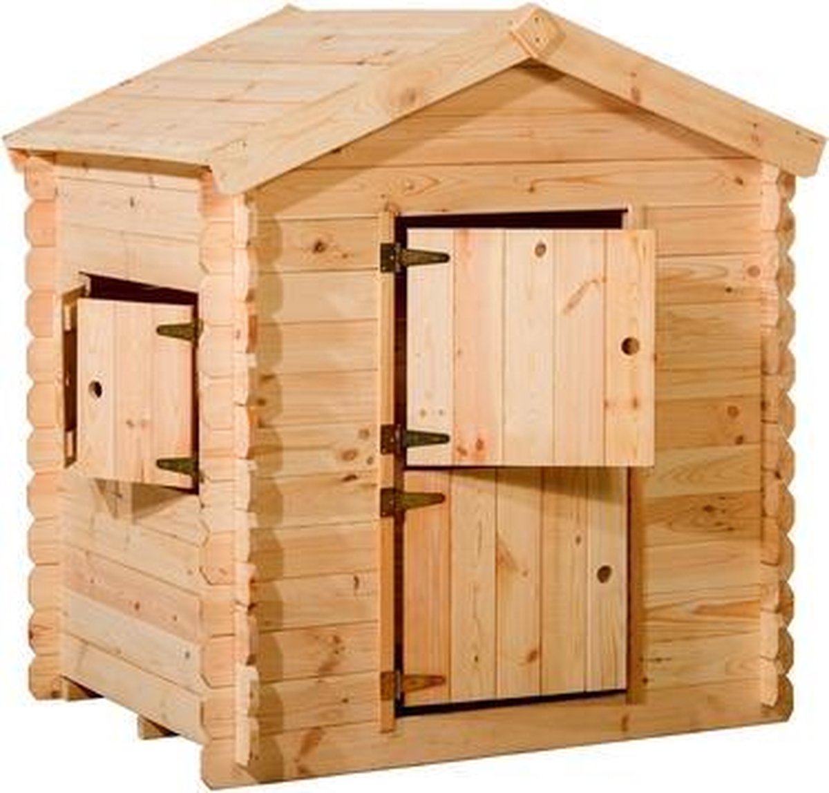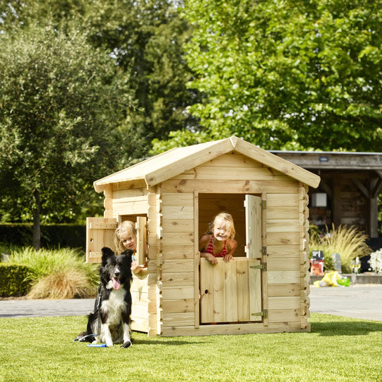 - Is het hout behandeld? Nee, het speelhuisje wordt geleverd in blank grenen, ideaal om zelf te schilderen of beitsen.