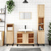 De badkamerkast biedt een uitstekende functionaliteit met zijn ruime indeling en flexibele montage-opties. Het duurzame materiaal is niet alleen sterk en stabiel maar ook ontworpen voor vochtbestendige omgeving zoals de badkamer. Bovendien voegen de stijlvolle ijzeren poten een industriële flair toe die het ontwerp modern en aantrekkelijk maakt.