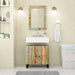 De badkamermeubelset biedt unieke voordelen zoals de combinatie van hergebruikt massief hout met een stevig ontwerp, ruime opbergmogelijkheden en een duidelijke spiegelweergave. Dit meubelstuk is niet alleen functioneel, maar voegt ook een stijlvolle en moderne touch toe aan je badkamer.