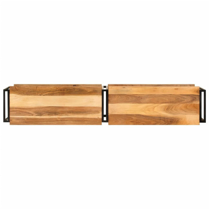 Dit Tv-meubel is vervaardigd uit massief acaciahout, een mooi en duurzaam materiaal dat niet alleen esthetisch is, maar ook een sterke basis biedt voor het frame. Het meubel beschikt over voldoende opbergruimte dankzij de handige schappen die ervoor zorgen dat jij je dagelijkse benodigdheden georganiseerd en gemakkelijk toegankelijk houdt. Het metalen frame versterkt de algehele stabiliteit en zorgt ervoor dat je meubel zelfs de zwaarste spullen kan dragen. De stevige bovenkant van het meubel biedt de perfecte mogelijkheid om jouw favoriete decoratieve items zoals planten of fotolijstjes neer te zetten en zo je persoonlijke stijl te benadrukken.