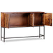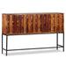 Vervaardigd uit massief sheeshamhout, een tropisch hardhout beroemd om zijn prachtige nerven, biedt dit dressoir met afmetingen van 120 x 30 x 80 cm (L x B x H) een stevig blad waarop je een fruitmand, een vaas of andere decoratieve items kunt plaatsen. De sterke, smeedijzeren poten zorgen voor een solide constructie, terwijl de twee kastjes voldoende ruimte bieden om kleine spulletjes georganiseerd en binnen handbereik te houden. Elk stuk is volledig handgemaakt, wat betekent dat de unieke houtnerven een waar kunstwerk creëren dat afwijkt van de rest.