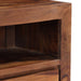 Met afmetingen van 120 x 30 x 40 cm (B x D x H) is dit meubelstuk slim ontworpen om optimaal gebruik te maken van de beschikbare ruimte. De ruime opbergmogelijkheden omvatten drie lades en één vak, perfect voor het organiseren van dvd's, spelconsoles of boeken. De natuurlijke houtnerf maakt elk exemplaar uniek, waardoor u een exclusief meubel in huis haalt. Dankzij het afgeronde en gepolijste oppervlak straalt het meubelstuk niet alleen verfijning uit, maar is het ook onderhoudsvriendelijk.