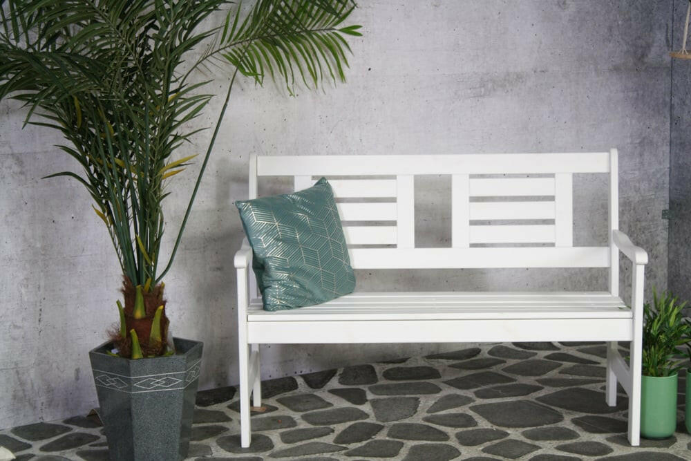 Voeg een vleugje comfort en elegantie toe aan uw buitenruimte met de Amelie 2-zits tuinbank van 120 cm, uitgevoerd in stralend wit (KING ®). Deze tuinbank biedt niet alleen een heerlijke zitplek, maar pronkt ook met zijn moderne vormgeving en verfijnde witte beitslaag, waardoor hij moeiteloos in zowel eigentijdse als landelijke tuinen past.