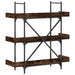Het doordachte ontwerp van de Boekenkast Finestra | Luxeline Gerookt Eiken omvat opstaande randen aan de zijkanten en achterkant van de planken, die voorkomen dat je spullen eraf vallen en tegelijkertijd de muren beschermen tegen vuil en krassen. De X-vormige stangen samen met het metalen frame voegen een industriële stijl toe aan je interieur, waardoor deze boekenkast niet alleen functioneel maar ook esthetisch aantrekkelijk is.