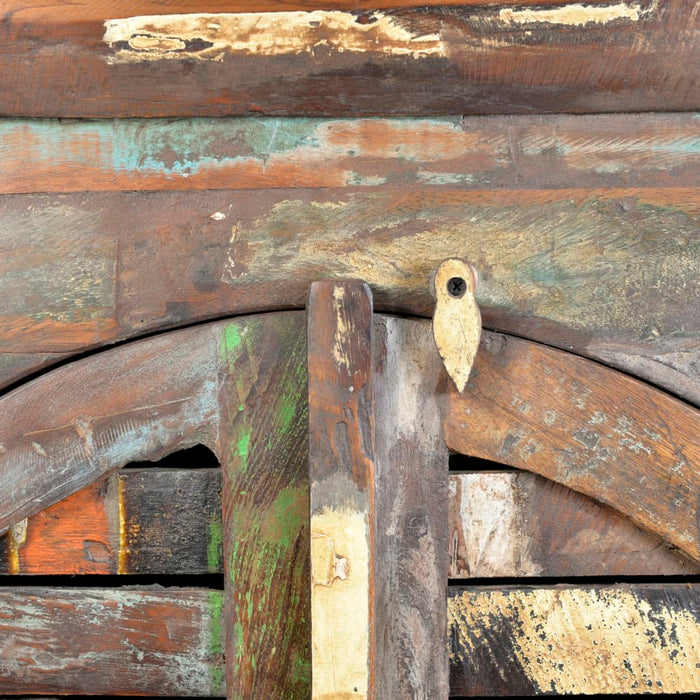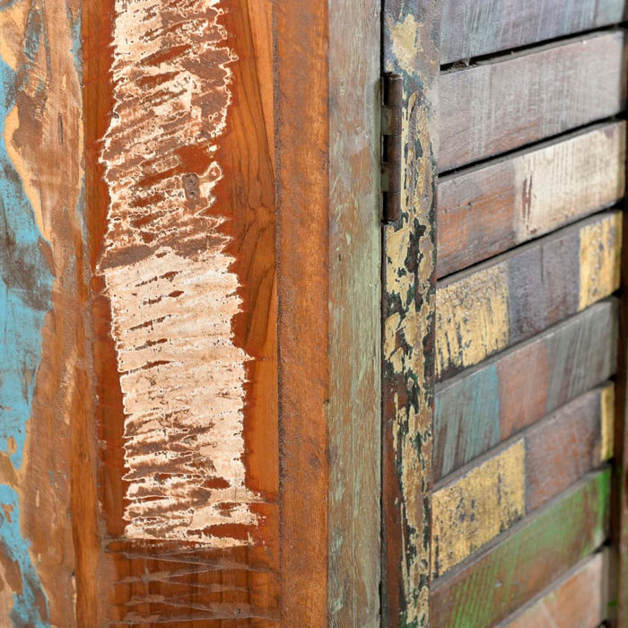 Deze antiek ogende houten boekenkast is zorgvuldig vervaardigd uit gerecycled hout, wat betekent dat elk exemplaar zijn eigen unieke charme en geschiedenis met zich meedraagt. Met drie ruime schappen en twee deuren biedt deze kast meer dan genoeg ruimte voor je boeken, tijdschriften, cd's en dossiers, waardoor je alles netjes en georganiseerd kunt bewaren. Het gebruik van hergebruikt hout laat niet alleen de schoonheid van verschillende houtsoorten zoals teakhout, acacia en mangohout zien, maar draagt ook bij aan een milieuvriendelijke levensstijl. De spijkergaten en zichtbare nerven vertellen verhalen van het verleden, en elke kast creëert zo een warmere en authentiekere sfeer in je woonruimte.