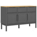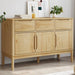 Met totale afmetingen van 114 x 43 x 74 cm en een handige indeling is er voldoende ruimte om al je dagelijkse benodigdheden geordend binnen handbereik op te bergen. De praktische deuren zorgen ervoor dat je spullen stofvrij blijven. De stevige bovenkant is perfect voor het tentoonstellen van decoratieve items, terwijl de houten poten het dressoir een natuurlijke uitstraling geven en voor stabiliteit zorgen. Dit meubelstukken van Grenova integreert moeiteloos in elke interieurstijl en biedt veelzijdige opbergmogelijkheden.