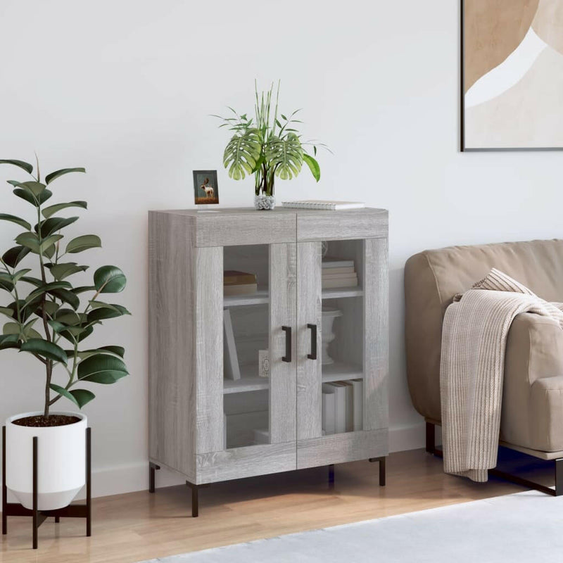 Dit klassieke dressoir is vervaardigd uit duurzaam materiaal dat bewerkt hout combineert met ijzeren poten, wat zorgt voor een uitstekende stabiliteit en een moderne uitstraling. Het gladde oppervlak maakt het eenvoudig om het meubel te onderhouden; een vochtige doek is voldoende om het schoon te maken. Met afmetingen van 69,5 x 34 x 90 cm (B x D x H) biedt dit dressoir een uitstekende oplossing voor het opbergen van dagelijkse benodigdheden, zodat alles netjes en geordend binnen handbereik is.