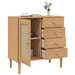 Het dressoir Nivoro van Grenova biedt een hoogwaardige constructie van massief grenenhout, wat zorgt voor zowel duurzaamheid als een warme uitstraling. Met ruime lades en vakken biedt het voldoende opbergruimte om je spullen georganiseerd te houden. Het unieke design met een rattan uitstraling geeft een trendy retro look, perfect voor elke moderne inrichting.