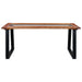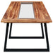 Deze eetkamertafel heeft een coole industriële stijl en is een geweldige aanvulling op je eetkamer of keuken. Het tafelblad is vervaardigd uit massief acaciahout en beschikt over een glas gedeelte in het midden, wat de tafel tot een echte blikvanger maakt. De gegalvaniseerde metalen poten dragen bij aan de industriële uitstraling en zorgen voor optimale stabiliteit. De rand van het hout volgt de natuurlijke vorm van de boom, wat de tafel nog mooier maakt. Montage is eenvoudig en geschikt voor elke doe-het-zelver. Het is echter goed om te onthouden dat hout een natuurlijk product is, zodat er kleine oneffenheden kunnen optreden.