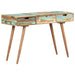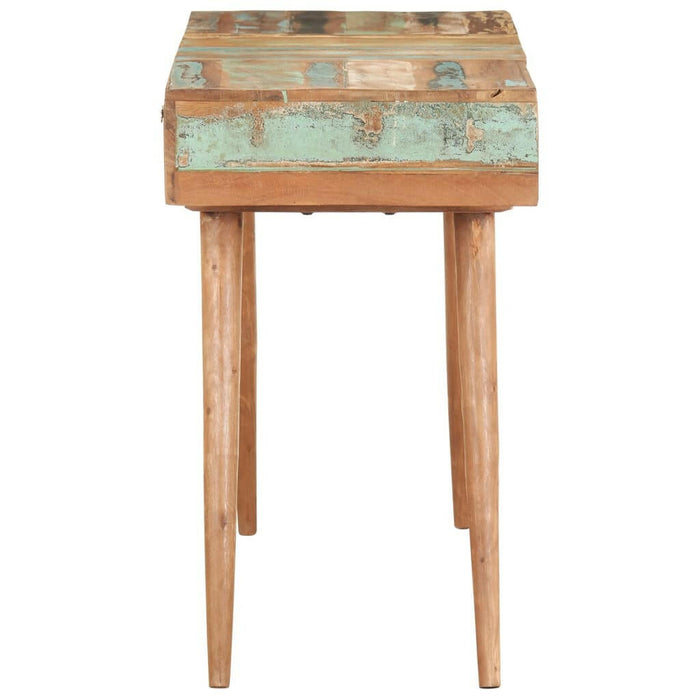 De Kaptafel Met Spiegel Sorelli is zorgvuldig vervaardigd van gerecycled hout, waarbij elk stuk met de hand is gemaakt om de natuurlijke schoonheid van het materiaal tot leven te brengen. Het gerecyclede hout, afkomstig uit diverse houtsoorten zoals grenen, teak, en acacia, maakt elke tafel uniek met zijn eigen houtnerven en kleurschakeringen. Met afmetingen van 112 x 45 x 76 cm (L x B x H) past deze tafel perfect in uiteenlopende interieurs. De spiegel en verborgen opbergruimte, samen met twee praktische lades, zorgen ervoor dat al je make-up en verzorgingsproducten netjes opgeborgen zijn.