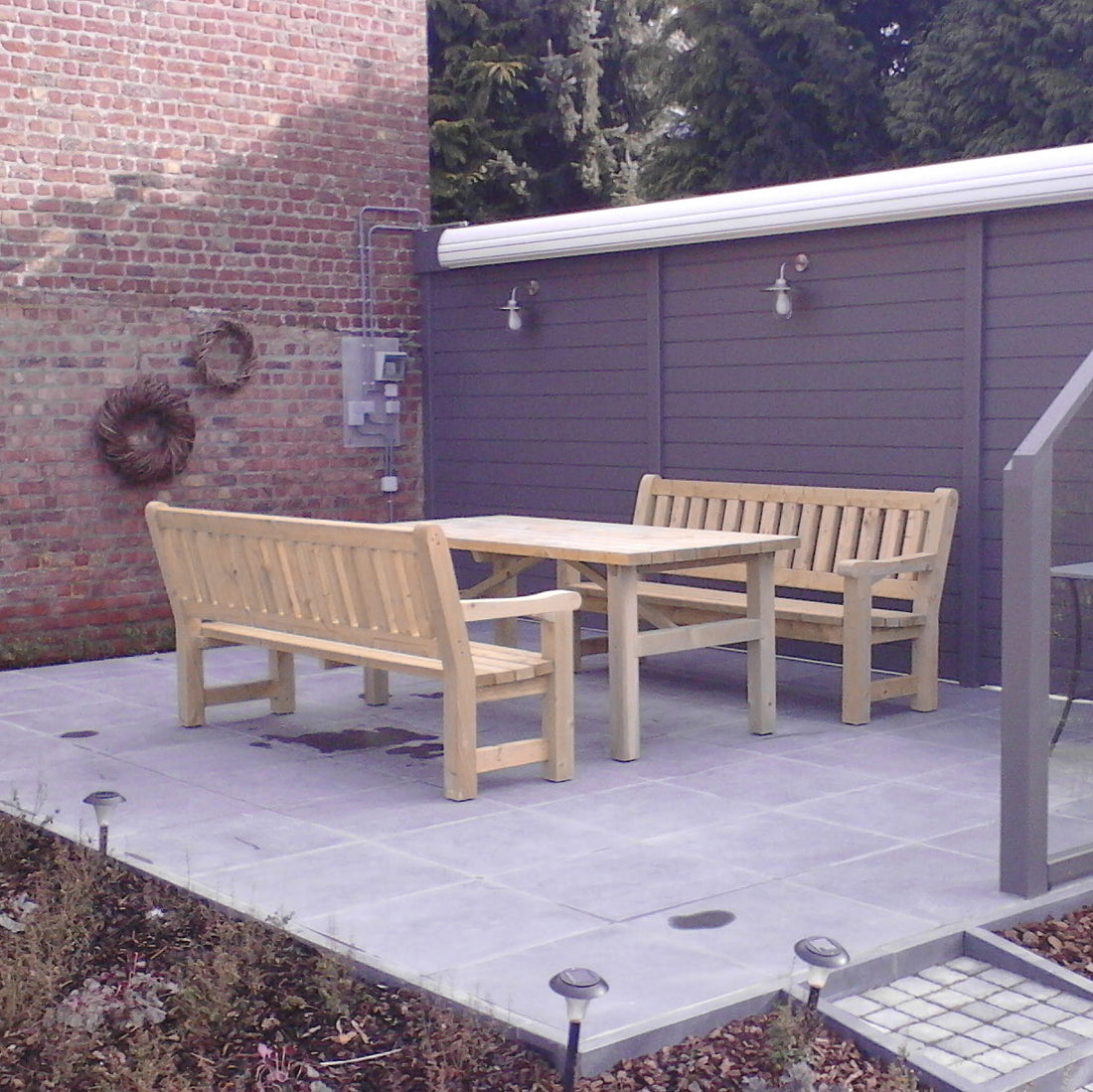 - Tuintafel: 200 cm x 90 cm x 78 cm (Lengte x diepte x hoogte). De poten zijn 8 cm dik.