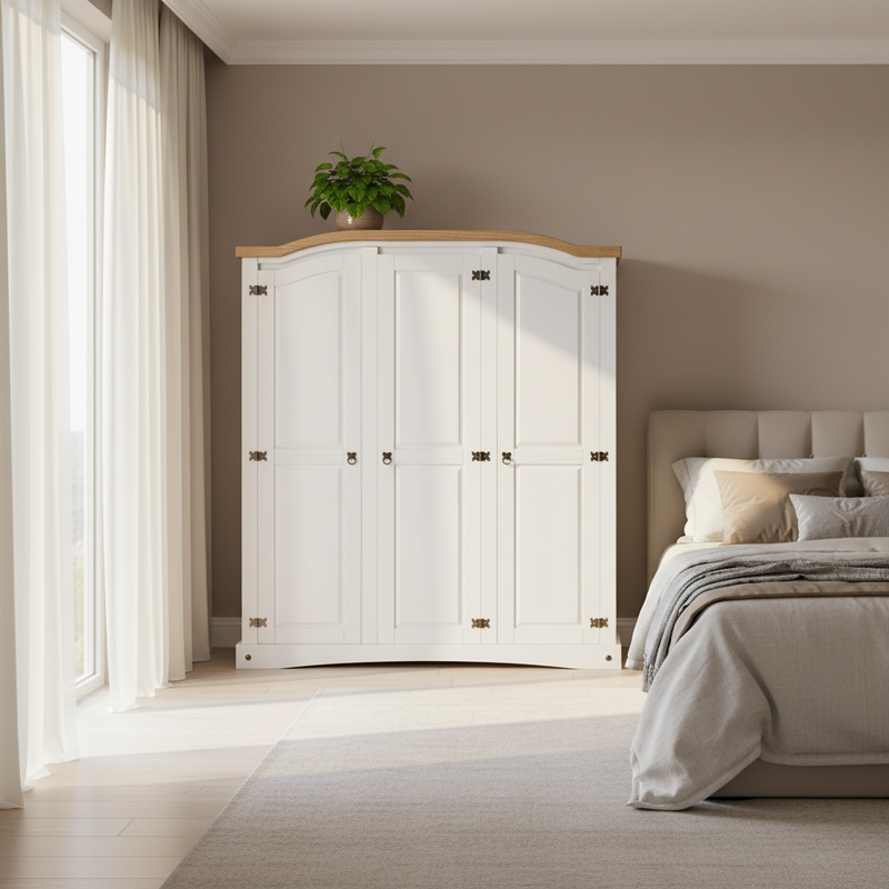 Ontdek de veelzijdigheid van de Kledingkast Naroma | Luxeline, een stijlvolle toevoeging aan elke slaapkamer of garderobe. Deze hoogwaardige houten kledingkast combineert functioneel design met de rustieke charme van de Mexicaanse Corona-stijl, wat zorgt voor een visueel aantrekkelijke en praktische oplossing voor al je opbergnoden.