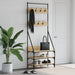 - Het kledingrek biedt een perfecte combinatie van opbergruimte en stijl, met voldoende ruimte voor kleding en tassen, en onderste schappen voor schoenen.