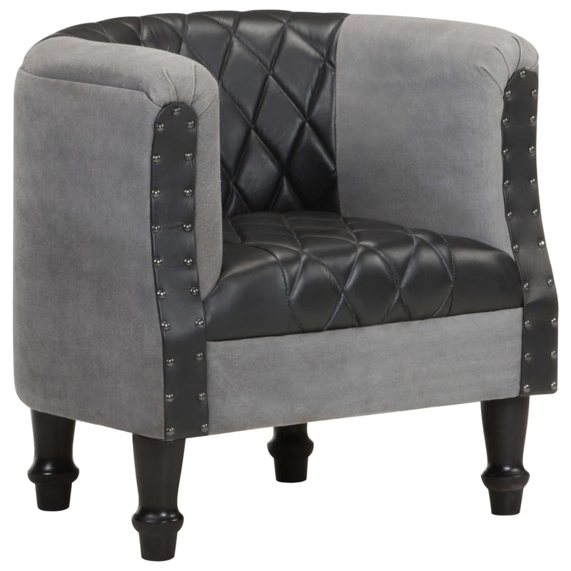 Deze kuipstoel is bekleed met echt geitenleer en canvas, dat zacht aanvoelt. De leren stoel wordt ondersteund door sterke mangohouten poten, die extra stevigheid en stabiliteit bieden. Daarnaast is de bekleding afgewerkt met klinknagels voor een industriële uitstraling. Dankzij de gebogen armleuningen en de dikke, gevoerde zitting en rugleuning, is de leren fauteuil de perfecte plek om comfortabel te zitten.