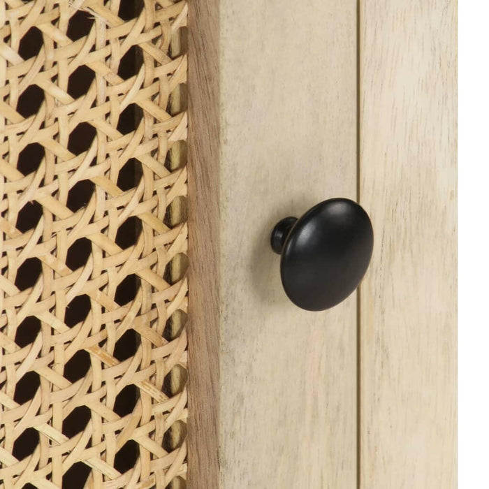 | Materiaal: | Massief mangohout met bleekafwerking, natuurlijk riet, gepoedercoat staal |