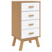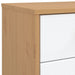 Om kantelen te voorkomen, wordt aangeraden het Nachtkastje Olden New | Grenova met de meegeleverde bevestigingsmaterialen aan de muur te monteren. Het nachtkastje heeft een stijlvolle combinatie van wit en bruin en is vervaardigd van hoogwaardige materialen, wat zorgt voor een tijdloze en duurzame toevoeging aan je interieur.