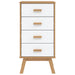 Het nachtkastje biedt voldoende opbergruimte met vier ruime lades, ideaal om kleine spullen zoals tijdschriften, boeken en afstandsbedieningen netjes op te bergen. Het stevige bovenblad is perfect voor het tentoonstellen van decoratieve items zoals fotolijstjes en planten. De houten poten versterken de natuurlijke uitstraling en zorgen voor extra stabiliteit, waardoor dit nachtkastje in elke interieurstijl past.