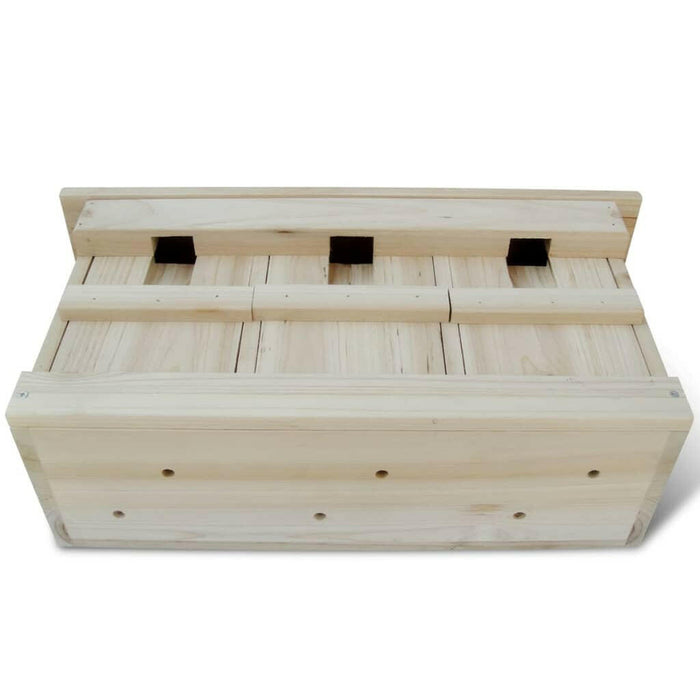 Het kastje is voorzien van drie openingen, waardoor er voldoende ruimte is voor meerdere vogelpaartjes om hun nestjes te bouwen. Hierdoor kunt u optimaal genieten van het gezelschap van kwetterende mussen. Dankzij het stevige hout van dit product gaat het jarenlang mee en integreert het naadloos in uw groene omgeving. De totale afmetingen van het nestkastje zijn 44 x 15,5 x 21,5 cm (L x B x H), wat zorgt voor de perfecte balans tussen functionaliteit en aantrekkelijkheid.