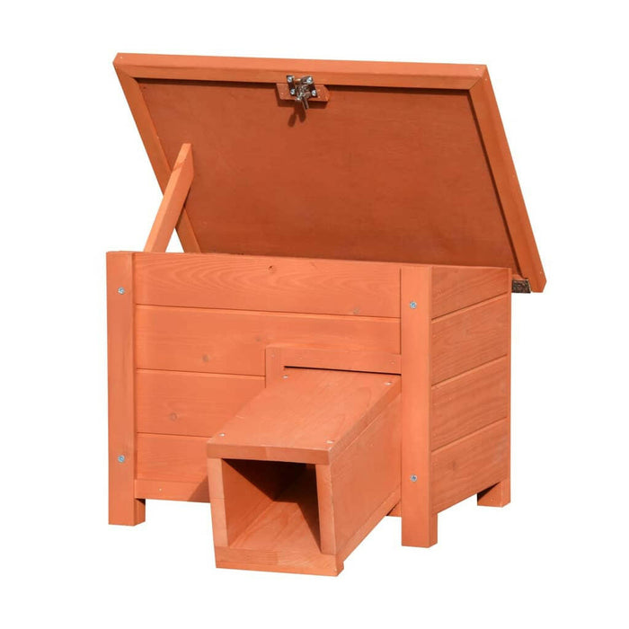 De ingang van het egelhuis is ontworpen met een korte tunnel van 10 x 10 cm, waardoor alleen kleine dieren, zoals egels, toegang hebben. Dit voorkomt dat ongewenste bezoekers zoals wasberen het huis binnendringen, waardoor je egel in alle rust kan genieten van zijn schuilplaats.