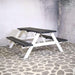 - Modern design: Met zijn grijze tafelblad en witte onderstel straalt Picknicktafel Sascha moderne flair uit, waardoor het een opvallend middelpunt wordt in elke buitenruimte.