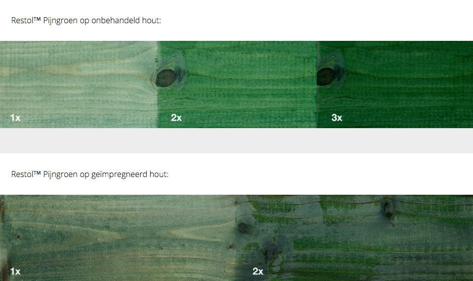 - Wij raden aan om twee lagen aan te brengen op geïmpregneerd hout en drie lagen op onbehandeld hout voor een optimaal resultaat.