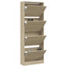 Deze schoenenkast is ontworpen met het oog op een efficiënte ruimtebenutting. Dankzij het hoogwaardige bewerkte hout biedt hij niet alleen een glad oppervlak, maar ook een sterke en stabiele constructie die vochtbestendig is. Met afmetingen van 60 x 42 x 69 cm (B x D x H) biedt de kast voldoende opbergruimte. Hij is uitgerust met een klaplade met drie lagen, wat betekent dat je gemakkelijk je schoenen op een georganiseerde manier kunt opbergen. Bovendien is het stevige blad van deze schoenenkast perfect voor decoratieve elementen zoals fotolijstjes of potplanten, waardoor het niet alleen functioneel, maar ook een aanvulling op je interieur is.