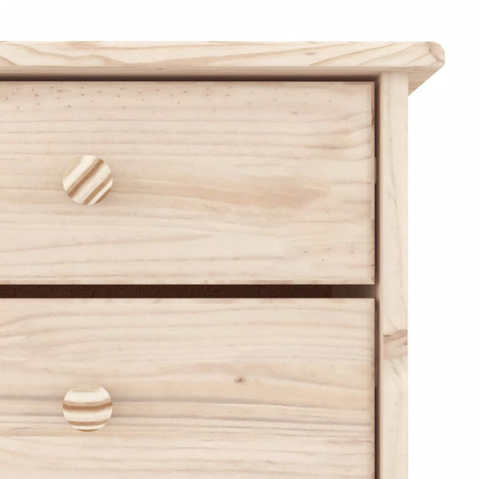 De schoenenkast is uitgerust met 2 deuren en 2 lades die samen zorgen voor voldoende opbergruimte voor uw schoenen en andere kleine spullen. Het gebruik van massief grenenhout geeft de kast een robuuste uitstraling, terwijl de houten knoppen een extra vleugje charme toevoegen en het openen en sluiten van de kast vergemakkelijken. Dankzij het onbehandelde oppervlak kunt u ervoor kiezen om het meubelstuk zo te laten of het naar wens te schilderen of te lakken. Onderhoud is een fluitje van een cent; een vochtige doek is voldoende om de kast schoon te houden. Vergeet bovendien niet om het meubel veilig aan de wand te bevestigen om omvallen te voorkomen.