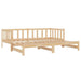 Deze praktische slaapbank is vervaardigd uit massief grenenhout, wat niet alleen zorgt voor een robuuste uitstraling, maar ook voor uitstekende duurzaamheid. Met een gelat ontwerp dat de luchtcirculatie bevordert, blijft het matras langer fris. Het eenvoudige gebruik maakt het ideaal, aangezien je geen gedoe hebt met boxsprings; leg gewoon het matras erop en je bent klaar om te ontspannen. Bij gebruik als bank biedt deze slaapbank de perfecte plek om te relaxen, terwijl het eenvoudig kan worden omgevormd tot een comfortabel bed voor gasten. Houd er rekening mee dat de levering alleen het bedframe omvat, zonder matras, maar passende matrassen zijn gemakkelijk te vinden in onze shop. De afmetingen zijn zorgvuldig ontworpen om aan al jouw wensen te voldoen: totale afmetingen (uitgeschoven) van 203,5 x 183 x 66 cm en (niet uitgeschoven) 203,5 x 98 x 66 cm, met een slaaphoogte van 21 cm.