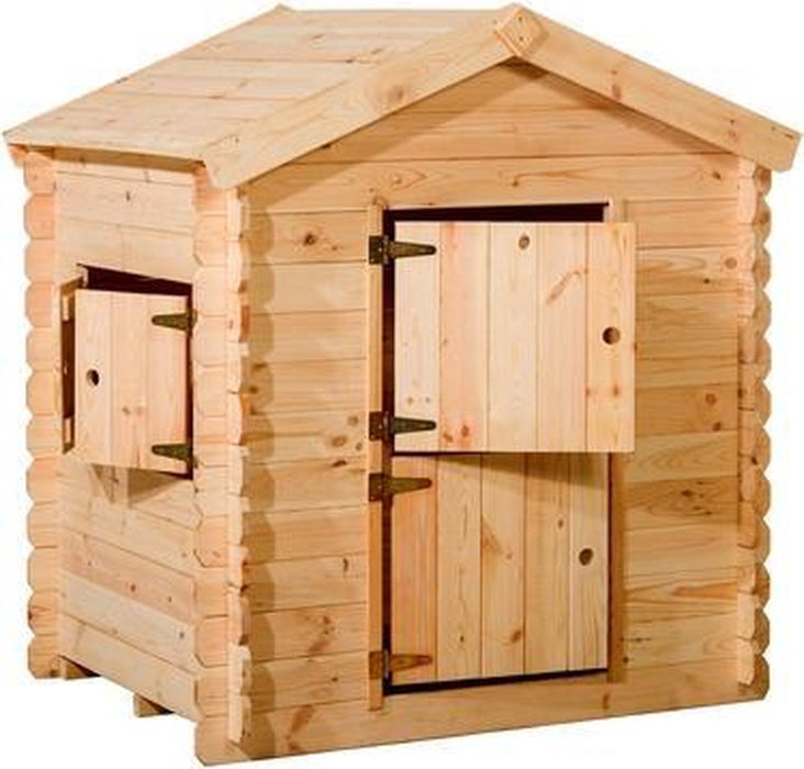 - Is het hout behandeld? Nee, het speelhuisje wordt geleverd in blank grenen, ideaal om zelf te schilderen of beitsen.