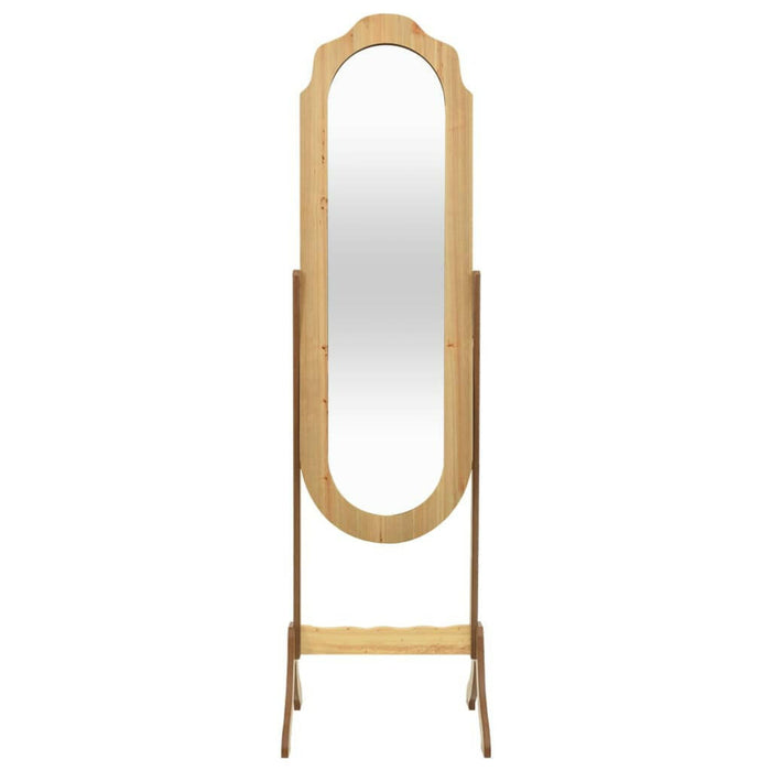 De spiegel biedt een hoogwaardige weerspiegeling en is ontworpen met zorg voor zowel functionaliteit als esthetiek. Het frame, vervaardigd uit duurzaam bewerkt hout, garandeert een solide en stabiele constructie. Dankzij de verschillende kantelhoeken past de spiegel zich perfect aan jouw gebruik aan, zodat je jezelf van alle kanten kunt bewonderen. Met een totale afmeting van 45,5 x 47,5 x 160 cm, inclusief een spiegelafmeting van 94 x 27 cm, is deze vrijstaande spiegel ideaal voor elk interieur. De veelzijdigheid maakt het mogelijk om de spiegel in verschillende ruimtes te gebruiken, waardoor je gemakkelijk de schoonheid van je interieur kunt benadrukken.