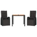 Deze eethoek is ontworpen met oog voor detail en biedt duurzaamheid en comfort. Het gebruik van PE-rattan garandeert een weerbestendige en onderhoudsarme meubelset, terwijl het gepoedercoat stalen frame zorgt voor stabiliteit. De verstelbare functies van de tuinstoelen, met een comfortabele indeling, maken het een genot om hier urenlang in te ontspannen. Het stevige tafelblad is ideaal voor het neerzetten van snacks en drankjes, terwijl de dik gevoerde kussens de ervaring nog aangenamer maken.