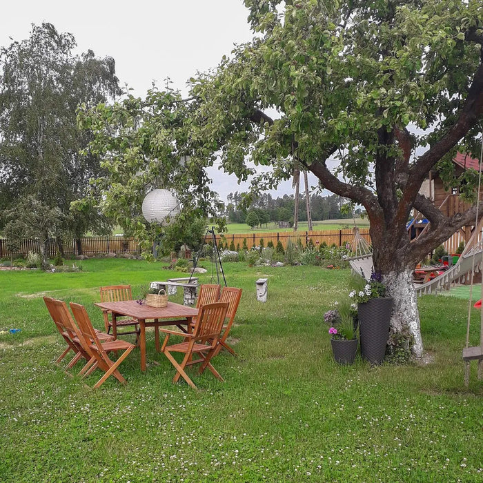 Deze inklapbare eetset is vervaardigd uit hoogwaardig acaciahout, een populair tropisch hardhout dat bekend staat om zijn duurzaamheid en weerbestendigheid. Dankzij de speciale olieafwerking is het oppervlak eenvoudig schoon te maken met een vochtige doek, waardoor deze set niet alleen mooi, maar ook praktisch is. De tafel is voorzien van een handig gat in het midden, perfect voor het plaatsen van een parasol. Wanneer je de set niet gebruikt, kun je zowel de tafel als de stoelen eenvoudig inklappen, waardoor je ruimte bespaart. De montage is eenvoudig, zodat je snel kunt genieten van je nieuwe tuinset.
