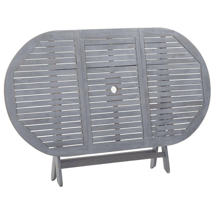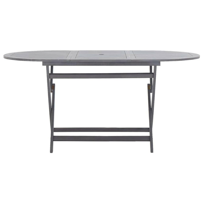 Gemaakt van massief acaciahout, staat deze tafel garant voor duurzaamheid en weerbestendigheid. Het tropische hardhout, geliefd om zijn sterkte, zorgt ervoor dat je jarenlang kunt genieten van deze buitenmeubel. De ingenieuze opklapbare functie maakt het eenvoudig om ruimte te besparen wanneer de tafel niet wordt gebruikt, en het praktische gat in het midden is perfect voor het stevig plaatsen van een parasol. Let op, de tafel vereist enige montage voor gebruik.