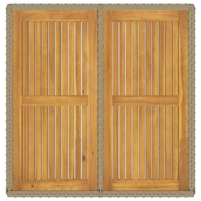 Met zijn eenvoudige maar trendy ontwerp is deze buitentafel perfect voor iedereen die de buitenlucht wil genieten, zonder in te boeten op stijl. De weersbestendige PE-rattan zorgt ervoor dat je deze tafel moeiteloos kunt schoonmaken en dat hij jarenlang meegaat. Het stevige gepoedercoate stalen frame en het houten tafelblad bieden stabiliteit en duurzaamheid. Met afmetingen van 109 x 107 x 74 cm (L x B x H) en een tafelblad met een dikte van 1,8 cm is er voldoende plek voor al je spullen tijdens een gezellige borrel of maaltijd. Dankzij de lichtgewicht constructie is de tafel bovendien gemakkelijk te verplaatsen, zodat je je buitenruimte geheel naar wens kunt inrichten.