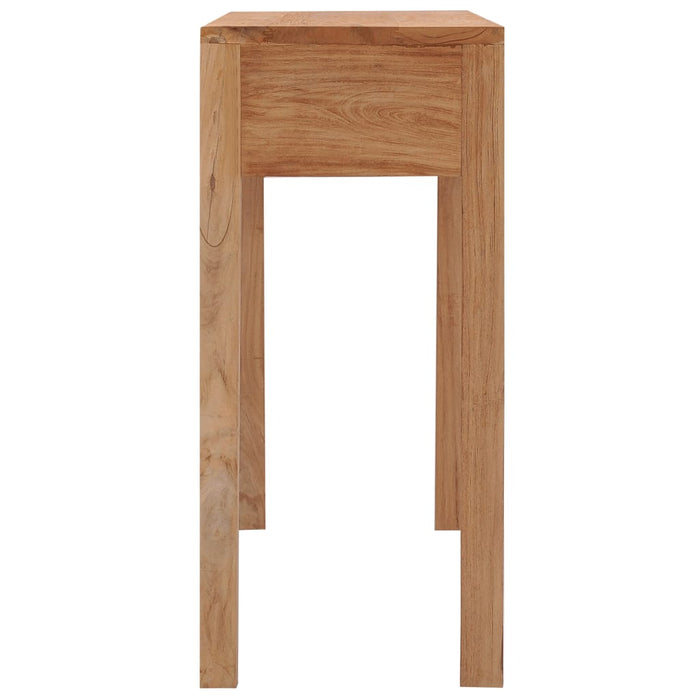 Deze haltafel is vervaardigd uit massief teakhout, wat niet alleen zorgt voor een prachtige uitstraling, maar ook voor ongekende duurzaamheid en slijtvastheid. Met een afmeting van 110 x 35 x 75 cm (L x B x H) biedt het stevige blad voldoende ruimte voor fruitmanden, fotolijsten en andere decoratieve voorwerpen. Dankzij de drie handige lades heb je altijd een plek voor kleine spullen, zodat je ruimte er altijd opgeruimd uitziet. Het eenvoudige montagesysteem maakt het inrichten van je ruimte nog gemakkelijker, terwijl je de unieke, rustieke afwerking kunt waarderen.