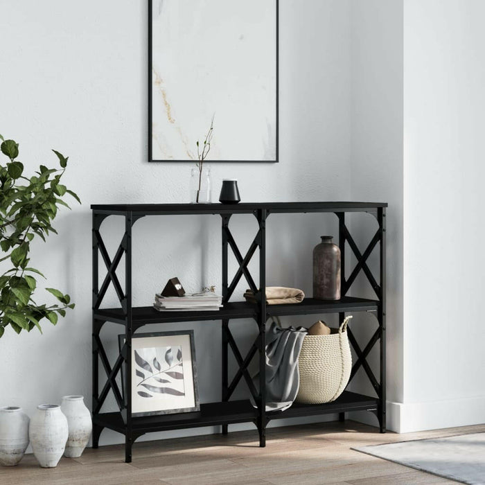 De wandtafel Valvronix combineert esthetiek met gebruiksgemak. Gemaakt van hoogwaardig bewerkt hout, biedt deze tafel een glad oppervlak dat zowel aantrekkelijk als praktisch is. Het stevige stalen frame met X-frames zorgt voor optimale stabiliteit, zodat je je geen zorgen hoeft te maken over wiebelen. De tafel is ontworpen met voldoende opbergruimte, perfect voor het netjes ordenen van je spullen. Het tafelblad is sterk genoeg om al je decoratieve items, zoals fotolijstjes en potplanten, te dragen. Met 6 verstelbare poten, voorzien van kunststof voetjes, blijven stabiliteit en evenwicht gegarandeerd op verschillende oppervlakken. Dit meubelstuk vereist een eenvoudige montage, wat de ervaring nog aangenamer maakt.